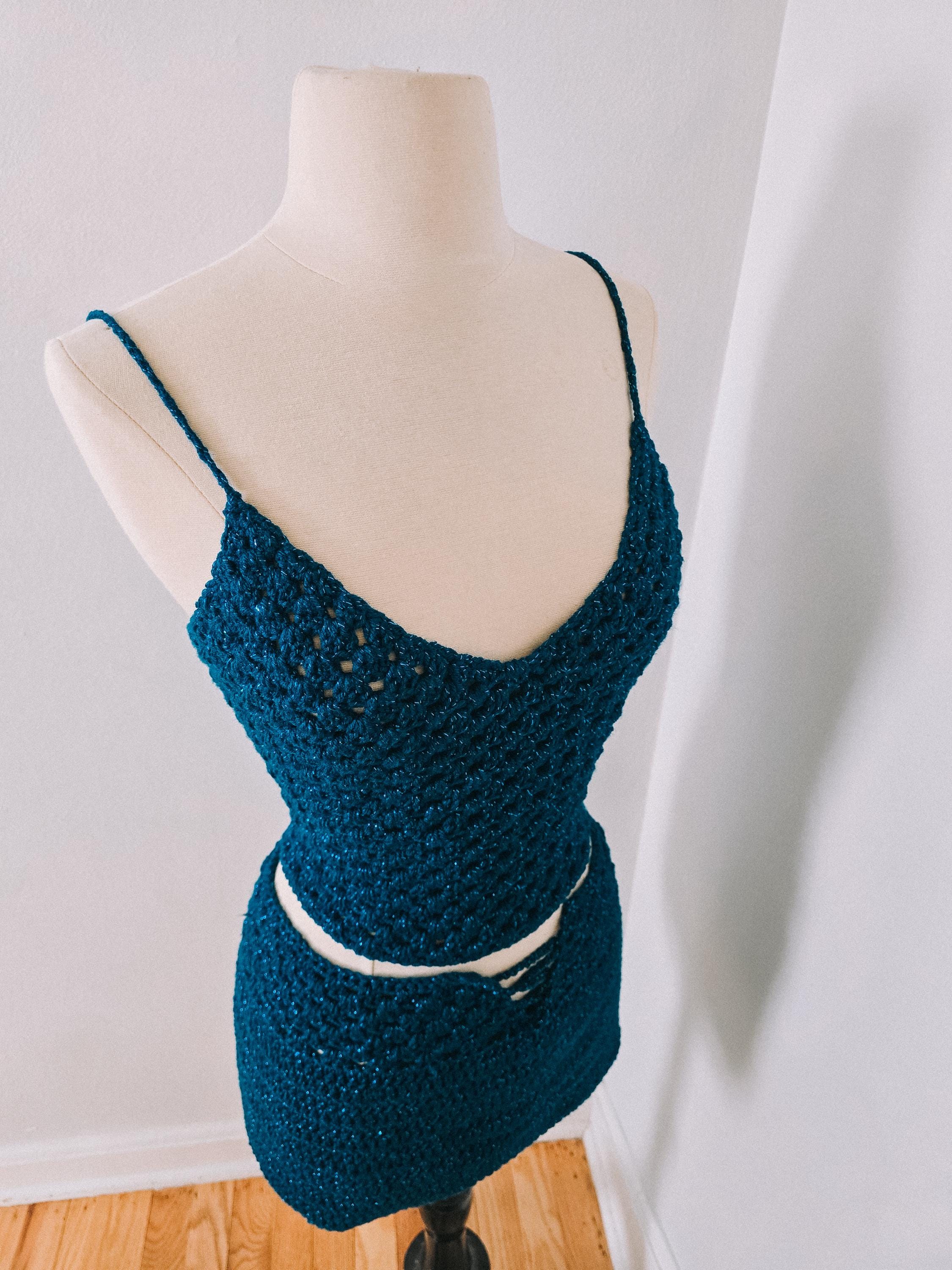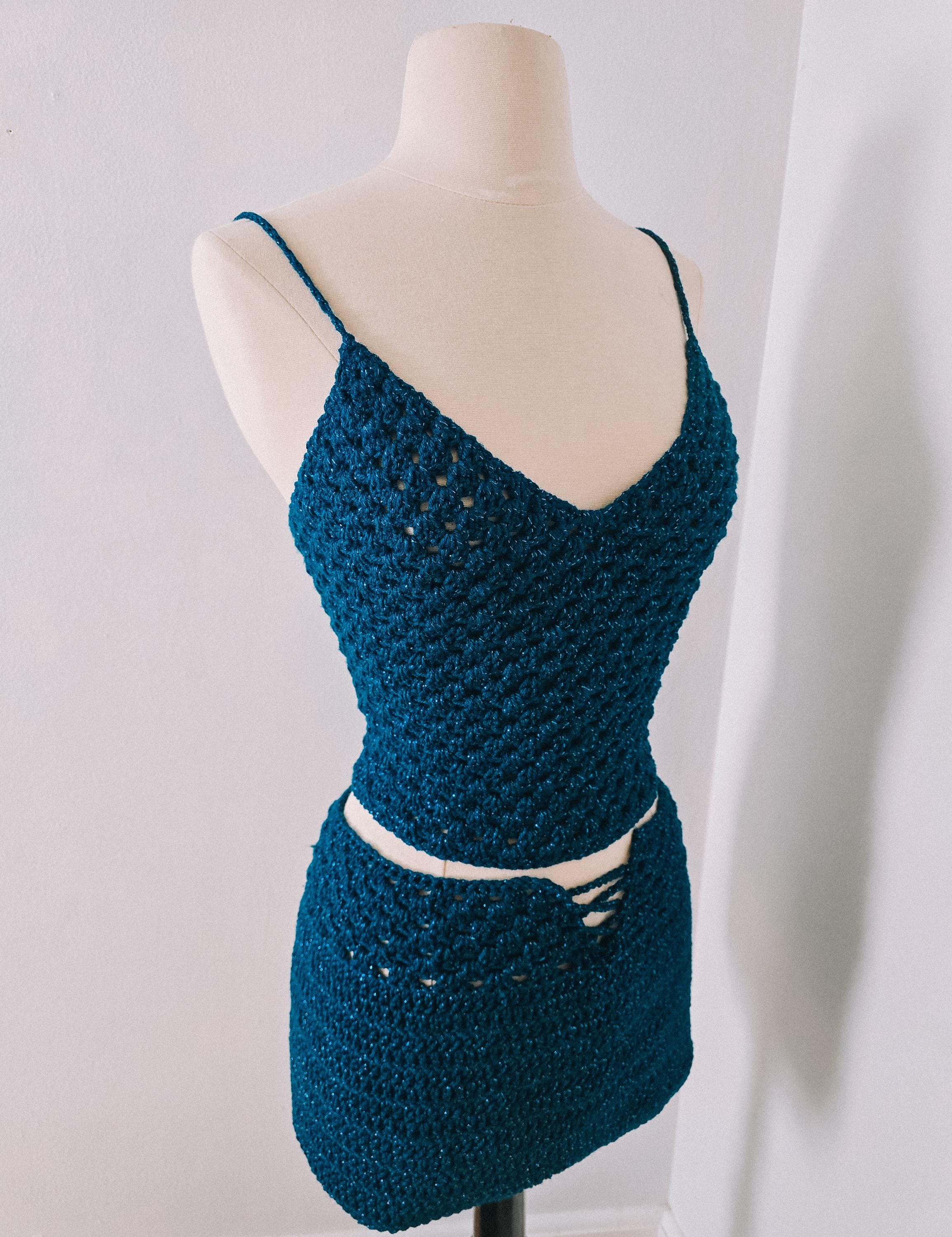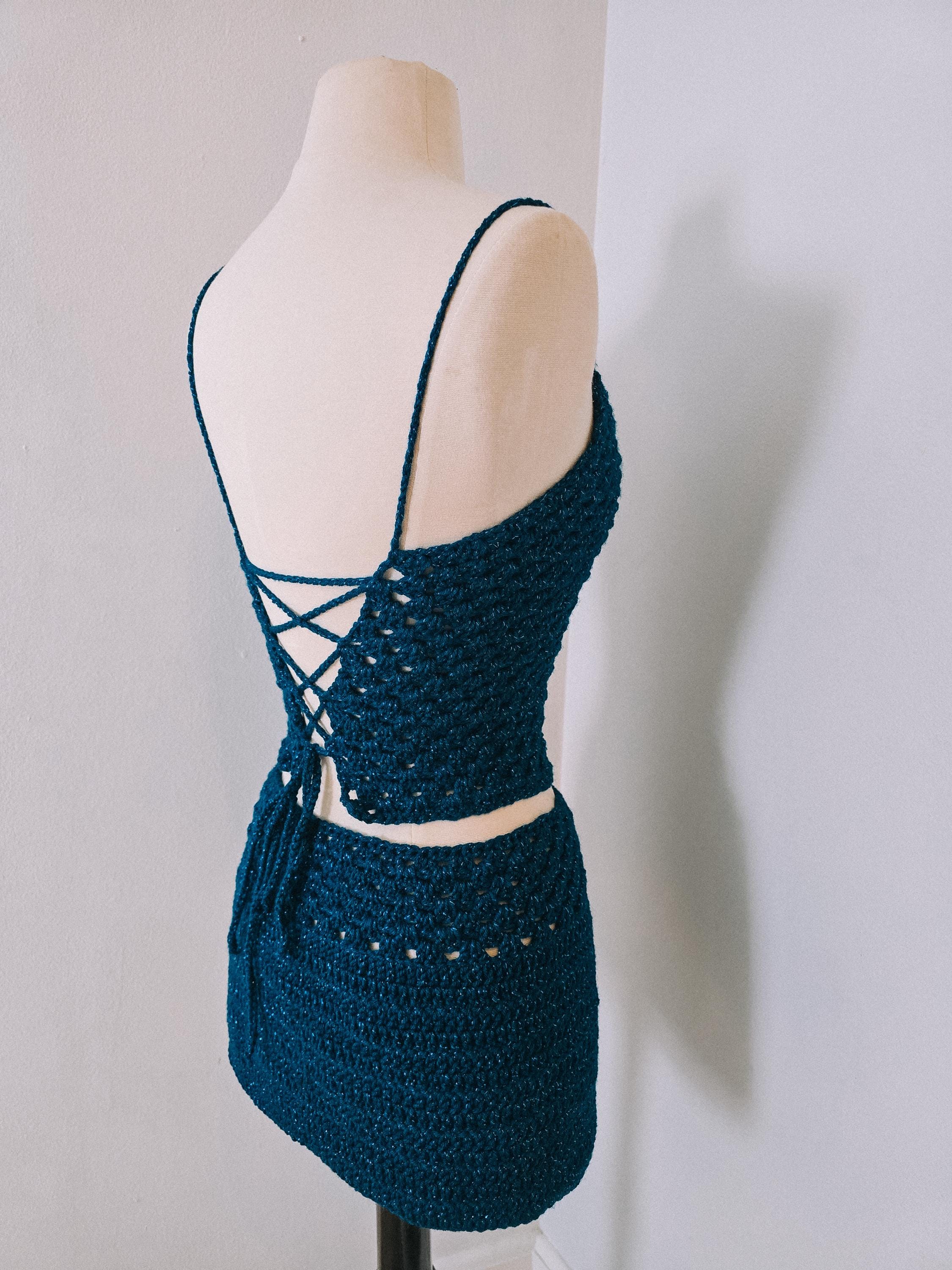 Turn heads at festivals, concerts, beach parties, and summer events with this handmade crochet two-piece outfit. This flattering set features a fitted crochet camisole top with an adjustable lace-up back and a matching mini skirt designed to hug your curves while remaining comfortable and breathable.