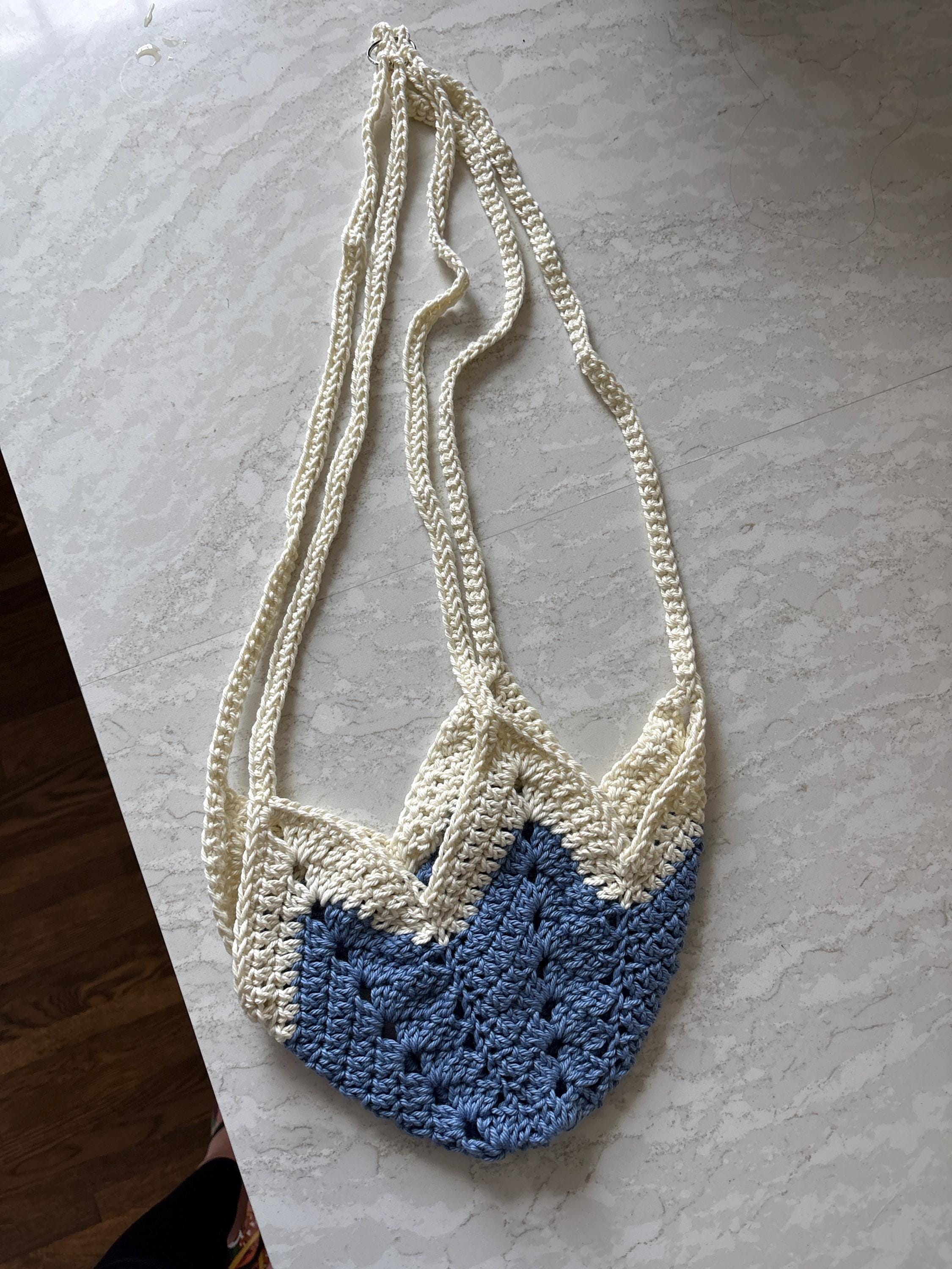 These crochet hanging planters can hold pots from 4-6" or 8-10"